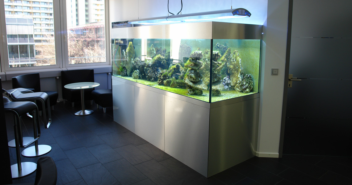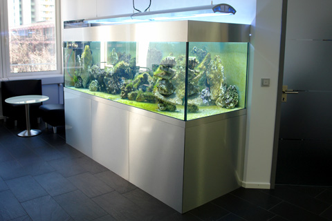 Aquarien gehören zu den speziellsten Einrichtungsgegenständen. Die richtige Balance muss gefunden werden zwischen Schutz vor dem Element Wasser, und Sichtbarkeit - denn dafür ist das Aquarium ja eigentlich gedacht. Gleichzeitig zwingt die Technik dahinter dazu, gewisse Bereiche abzublenden.