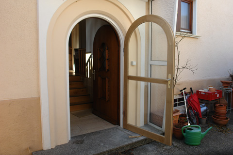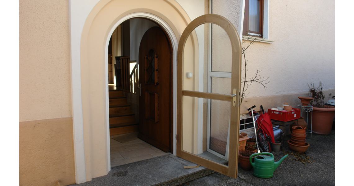 Der alte Türstock dieses Eingangs wurde restauriert um den Charakter des Gebäudes beizubehalten. Entsprechend muss die Tür dann aber auch dazu passen.